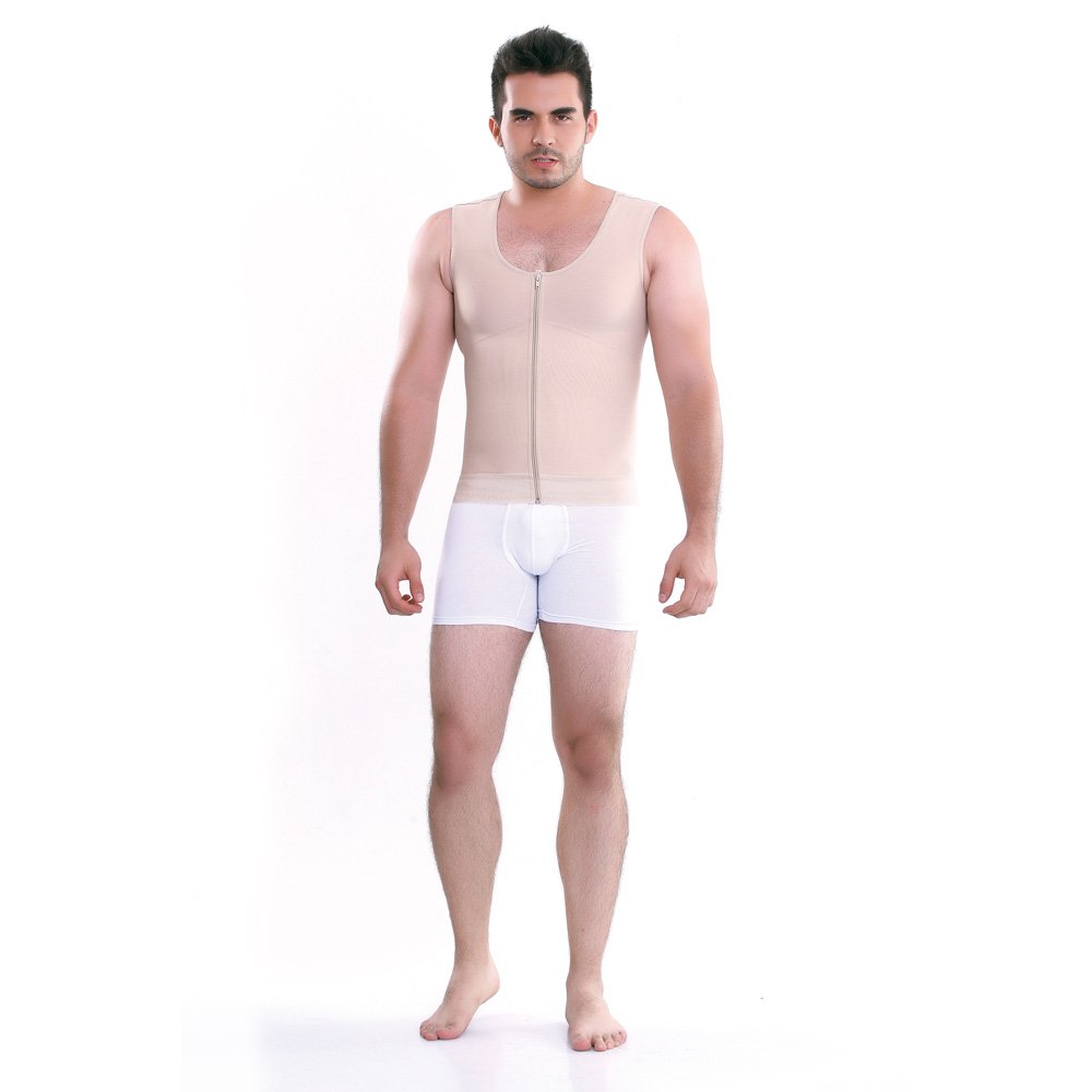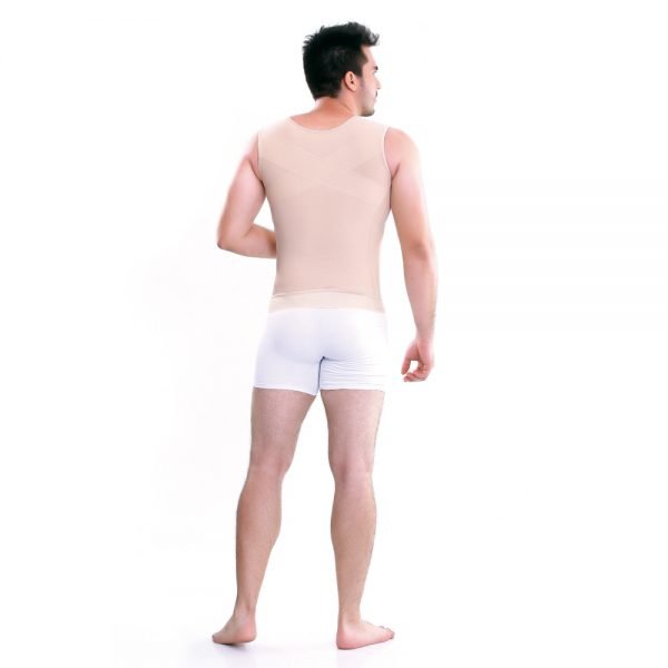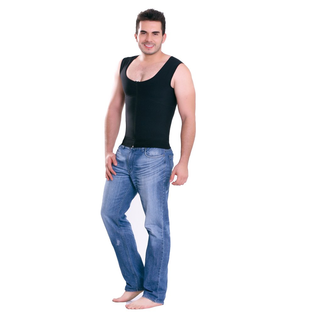 Chaleco para hombre, espalda cubierta con soporte que brinda comodidad y corrige postura. Oculta los rollitos de la espalda y comprime el abdomen. Broches internos y cierre frontal.