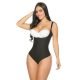 Chaleco busto libre, tiras ajustables y removibles, varillas metálicas flexibles que dan firmeza a la prenda con broches internos más cierre frontal. Espalda alta.