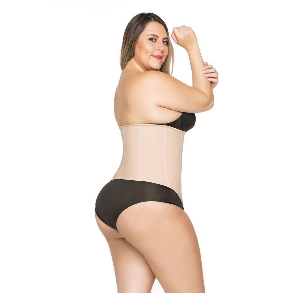 Cinturilla con varillas metálicas flexibles para dar firmeza a la prenda. Soporte en la espalda para corregir postura. Broches internos y cierre frontal.