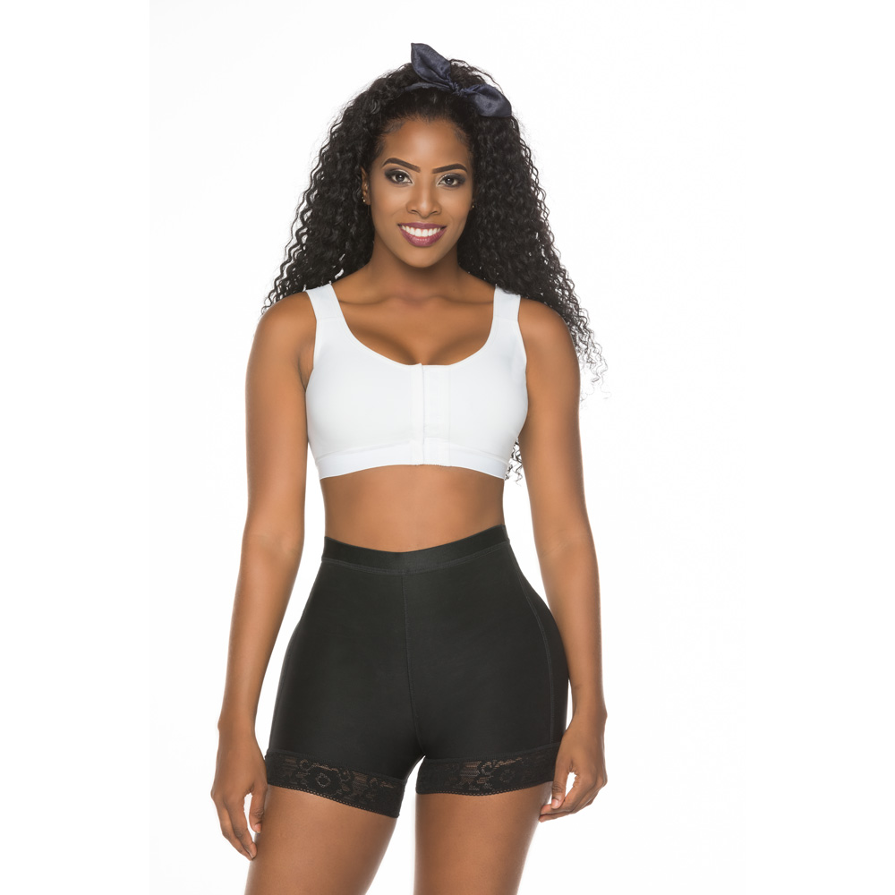 Short talle alto con huecos forrados. Realce de glúteos, terminaciones en encaje siliconado.